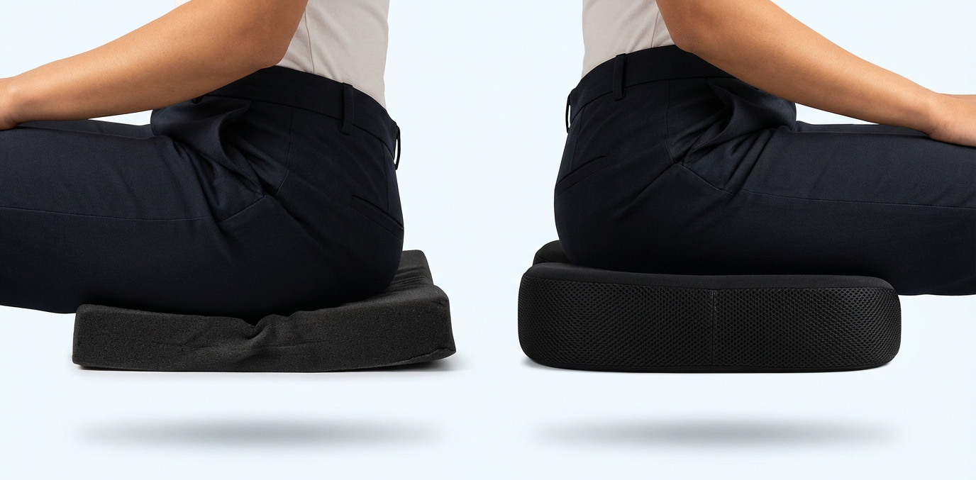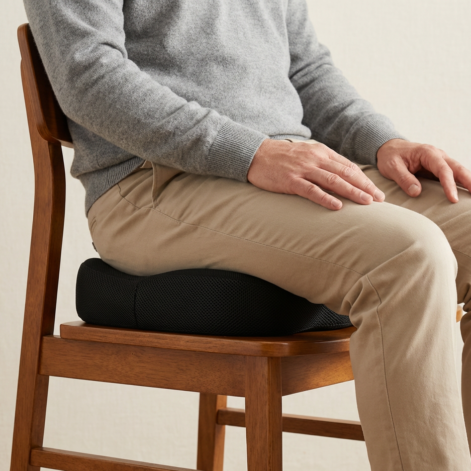 The cushion provides a softer, more supportive surface that helps reduce the discomfort many people feel from long periods of sitting. It helps make firm chairs feel gentler and more relaxing.